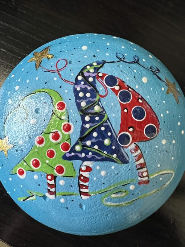 , acrylic on hand-made rock, 4″ x 1.5″.