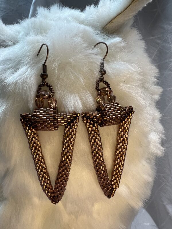 Copper seed beads, a few fire-polished stones, hand-sewn.