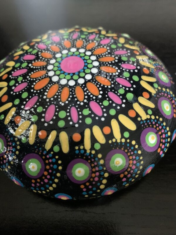 , acrylic on hand-made rock, 4″ x 1.5″.