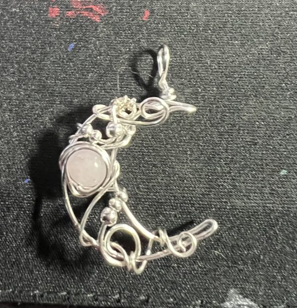 Crescent moon made with 20g wire and rose quartz stone. no chain